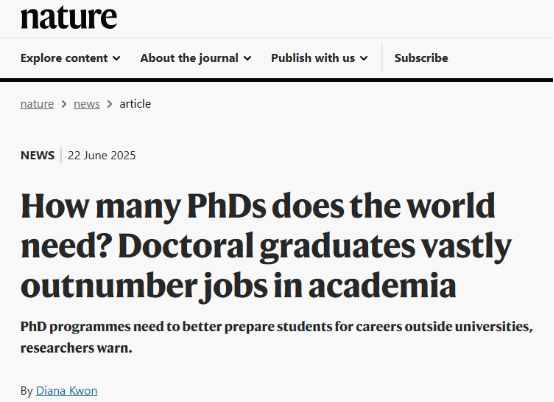 不仅国内如此,海外博士在国外的就业形势同样严峻(Nature多项调查均指出这一点)。